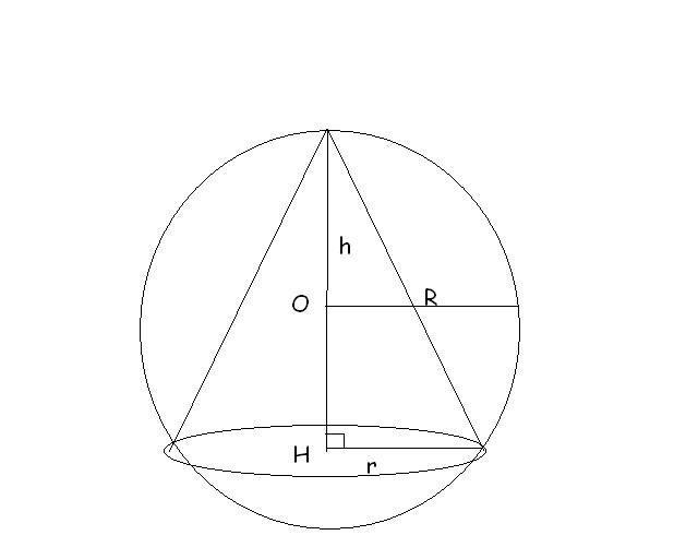 On rappelle que le volume d'un cône de révolution est V=pi/3 R²x, où x représente la hauteur du cône et R le rayon de la base de ce cône (attention il faut adapter cette formule avec R aux données de l'énoncé... le rayon de la base du cône de l'énoncé semble être... r car R est le rayon de la boule !!)