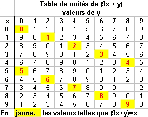 -Je passe sur l'étude des autres cas, avec A, B C ou D égaux à 9, car ils aboutissent tous à des impossibilités d'échelle, de la même manière que les cas D = 0 et C = 0.